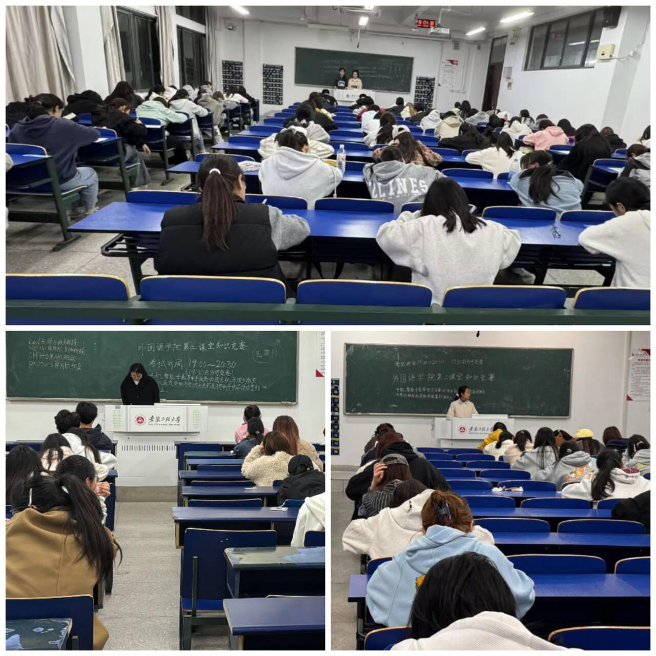 11月10日,外国语学院第二课堂知识竞赛在六号教学楼顺利举行。本次竞赛在开学以来已组织两次第二课堂知识培训的基础上开展,共吸引2024级、2025级本科生175人参加。比赛分为专业组与非专业组两个类别。