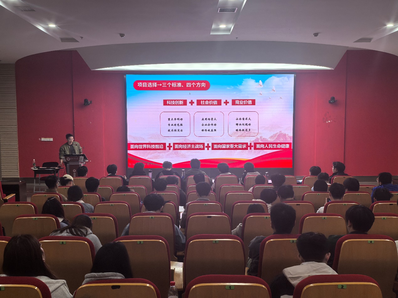 丁成龙从为什么参加科技创新竞赛、如何开展赛事选题与申请、如何组队与团队建设、如何开展研究与探索、如何撰写成果、如何进行汇报与答辩、如何开展心态调整等方面进行介绍,结合自身参赛经历,介绍了“挑战杯”赛事的历程、结构、参赛方式、奖项设置以及评审重点,帮助同学们更好的了解挑战杯赛事;为同学们系统梳理了参与科技创新活动的路径与方法,详细介绍比赛获奖作品选题来源、作品研究、成果积累等内容,着重分享竞赛过程中的心路历程、体会感悟以及自己的成长收获。他呼吁同学们要积极参加学科竞赛,并提出了三点建议:认清自我、明确个人定位、尽早规划;保持特色,务实探索,注重实践验证;团队协作,组建高效团队,实现优势互补。