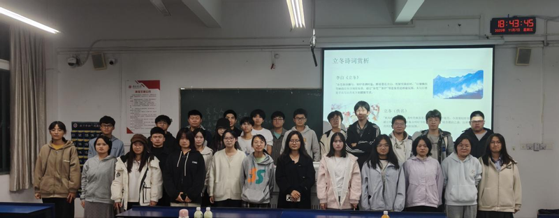 活动以“诗词为媒、节气为引、家国为魂”,精心构建递进式文化体验。在“冬韵·诗魂”章节,工程231张阳以李白《立冬》等经典诗篇为脉络,深度解析节气意象与文化哲思。围绕“近代诗词的救亡图存精神”展开的深度研讨,则引导同学们在历史回望中感悟“笔杆子”与“枪杆子”的同频共振,于文人风骨与战士豪情的交响中,体悟诗词承载的民族大义与精神伟力。