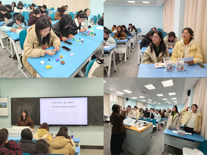 11月19日下午,生物与食品工程学院食品营养与安全协会在4J408教室面向新成员精心打造了一堂以“红味承初心,食践扬新梦”为主题的特色社团思政实践课。社团指导老师谢亮亮全程参与指导。本次实践课紧扣“红色饮食”主题,以“听、做、悟、行”为主线,层层推进,构建了“文化浸润—动手实践—思想升华—行动承诺”的育人闭环,实现专业特色与思政教育的深度融合。