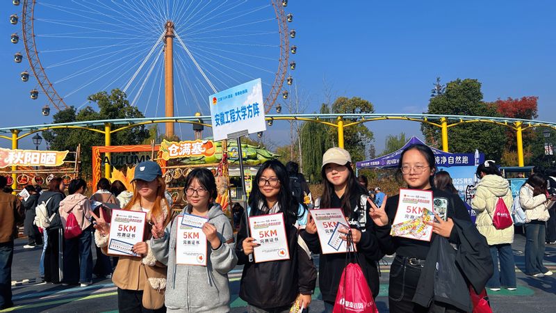 徒步活动于开幕式后正式开始。本次路线自银泰百货起至松鼠小镇止,全程约4.5公里,沿十里江湾公园堤坝行进,既是一次体力锻炼,也是一堂生动的户外素质拓展课。同学们在徒步中相互鼓励,步履坚定,欢声笑语与江风涛声相融,不仅增强了体魄,也在行走中切身感受到芜湖城市发展的新貌与“江城共生”的独特魅力。