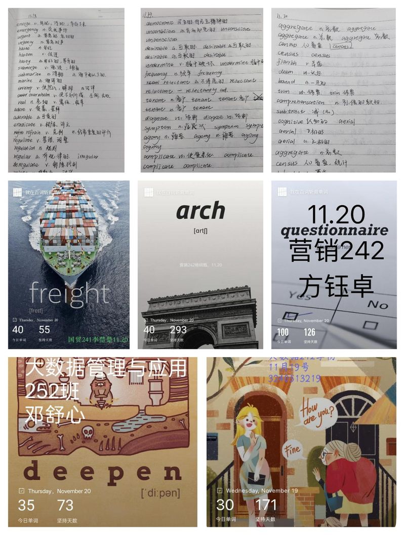 据悉,经济与管理学院始终将学生专业、学业高质量发展需求放在首位,此次单词打卡活动不仅显著助力学生外语词汇量的提升,更进一步培养了青年大学生自主学习的良好习惯。学院未来将继续策划丰富多彩的学习类活动,为学子们在外语学习与专业成长的道路上提供坚实支持,进一步营造浓厚的学风氛围。