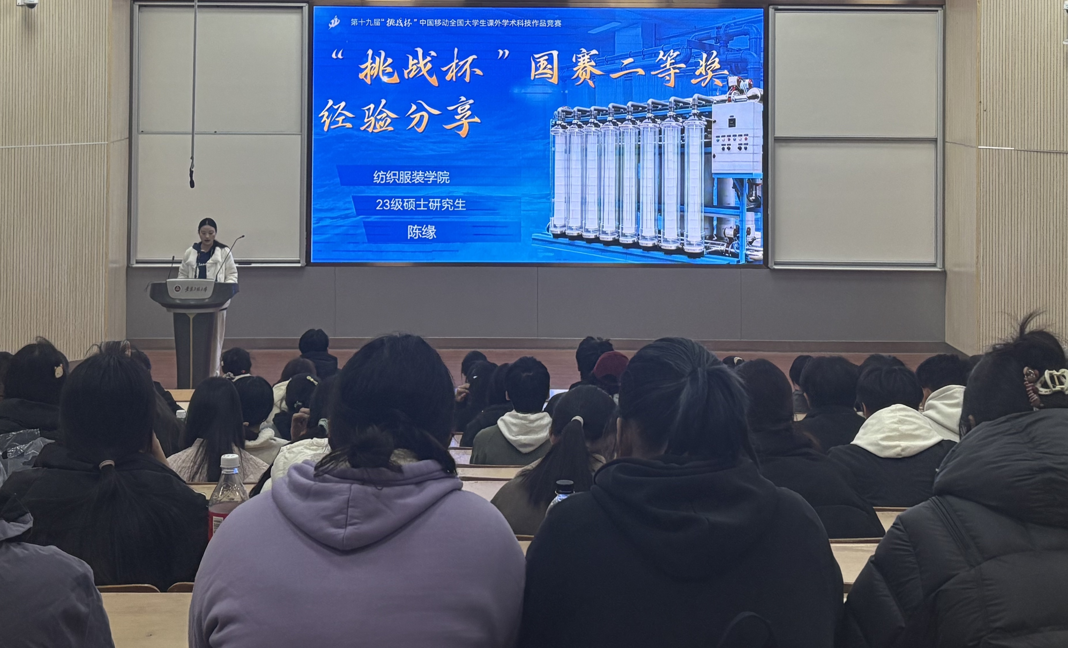 11月26日下午,材料学院、纺服学院、生食学院、化环学院、体育学院、建工学院联合举办以“科创引领成长,青春筑梦未来”主题交流活动。活动邀请第十九届“挑战杯”全国大学生课外学术科技作品竞赛国家二等奖获得者纺服学院研23陈缘和人文学院“阳光之旅”青年志愿者服务队队长法学232班张宝丰主讲,各学院青马班学院共计200余人参加活动。