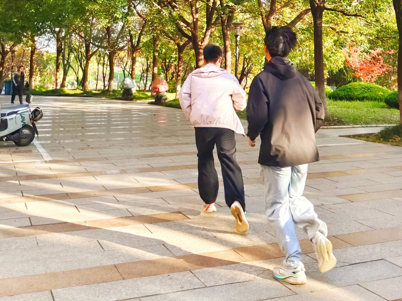 “猫”们紧盯着定位界面脚步不停,时而蹲守在转角处静候时机,时而穿梭在楼宇间默契包抄;“鼠”们攥着手机紧盯位置动态,要么贴墙快步甩开追踪,要么躲进树荫里屏息藏身。教学楼的连廊与台阶旁,奔跑的身影和轻快的惊呼交织——贴墙绕弯的灵巧、转角对峙的心跳、躲在角落的紧张,让校园的每个角落都浸满了鲜活的热闹劲。