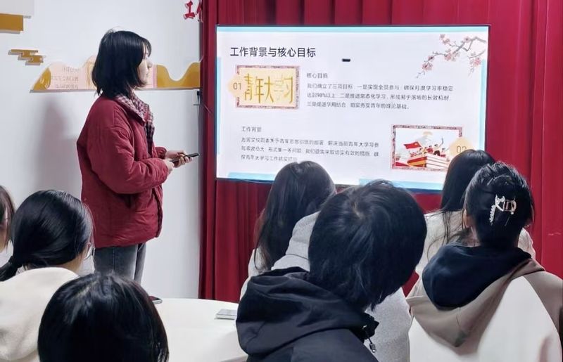 首先,李曼璐结合当前青年大学习推进现状,分析保障学习效果是当前工作核心目标,推动学习常态化落地,促进学用结合,夯实青年理论基础是实现目标的机制保障。具体措施可以通过固定每周学习节奏与每月统一时段,建立“学生会+团委+班委+舍长”分层督促体系,按宿舍分组落实,通过“规律节奏+集体督促”,培养青年大学生自律习惯,让理论学习融入日常。
