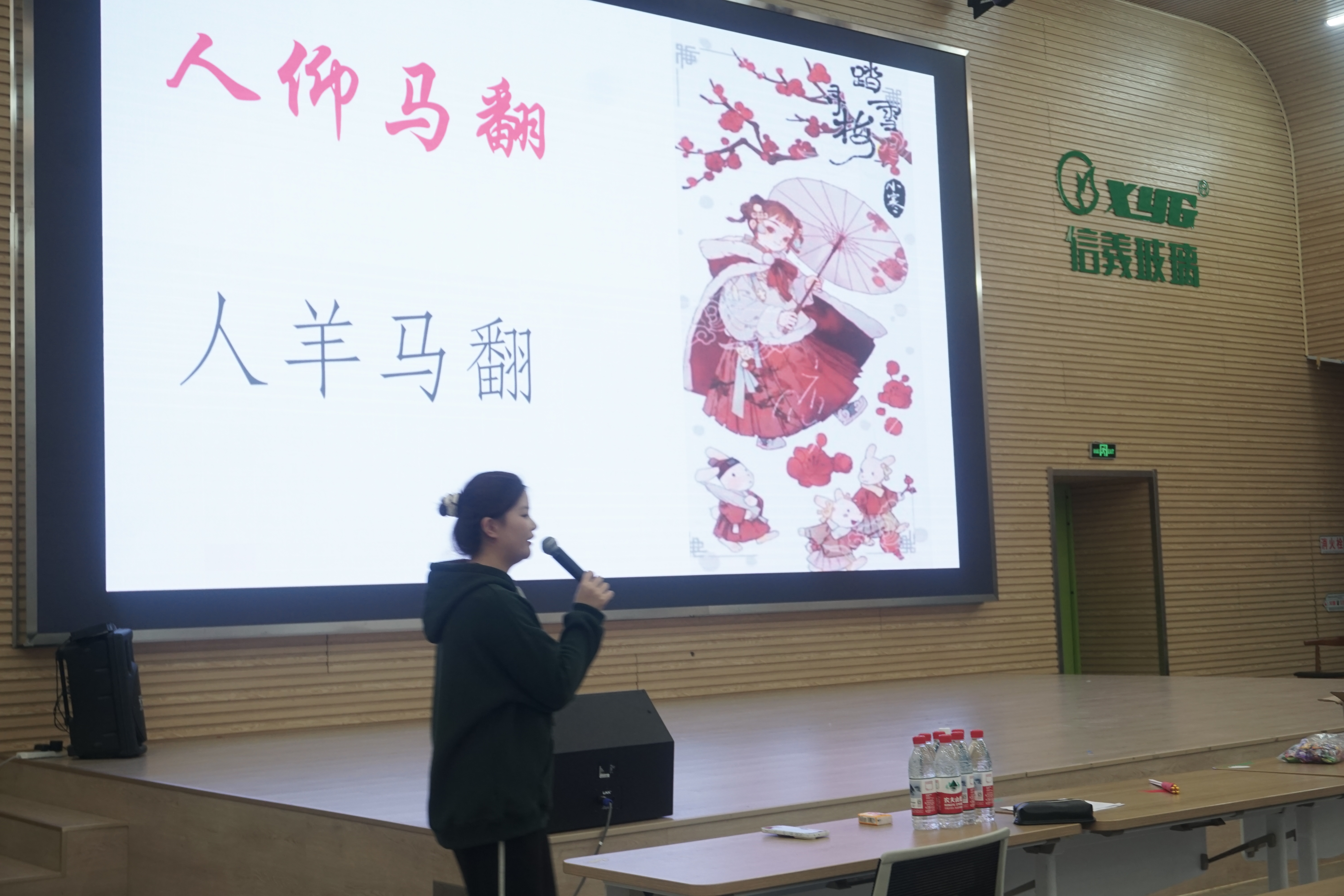比拼“最强大脑”之后,“记忆力大挑战——看图猜细节”让参与者瞪大了眼睛。“图片即将展示,请记住每一个细节!”“倒计时开始”话音刚落,一张信息量爆棚的图片瞬间投射到大屏幕上——也许是藏有多个箱子的奇幻场景台,也许是有着多个明星的综艺照片截图,或许是一张动漫角色大合照。“图中一共有几个集装箱?”“明星胸前的丝巾是什么颜色的?”“这个动漫角色抱着的动物有哪些”图片一闪而过,问题接踵而至。全场安静得只剩下心跳声,每个人都努力将刚刚看到的画面刻进脑海里。“抢答开始!”话音刚落,无数手臂瞬间举起,“是14个箱子!”“丝巾是蓝色的!”“抱着的是猫咪和乌鸦!”惊呼声、欢笑声、讨论声此起彼伏,这个环节不仅考验瞬时记忆和观察力,让同学们在紧张的脑力冲刺中拧成了一股绳,更还有着各组之间抢答的针锋相对下展示出的恢弘风采。
