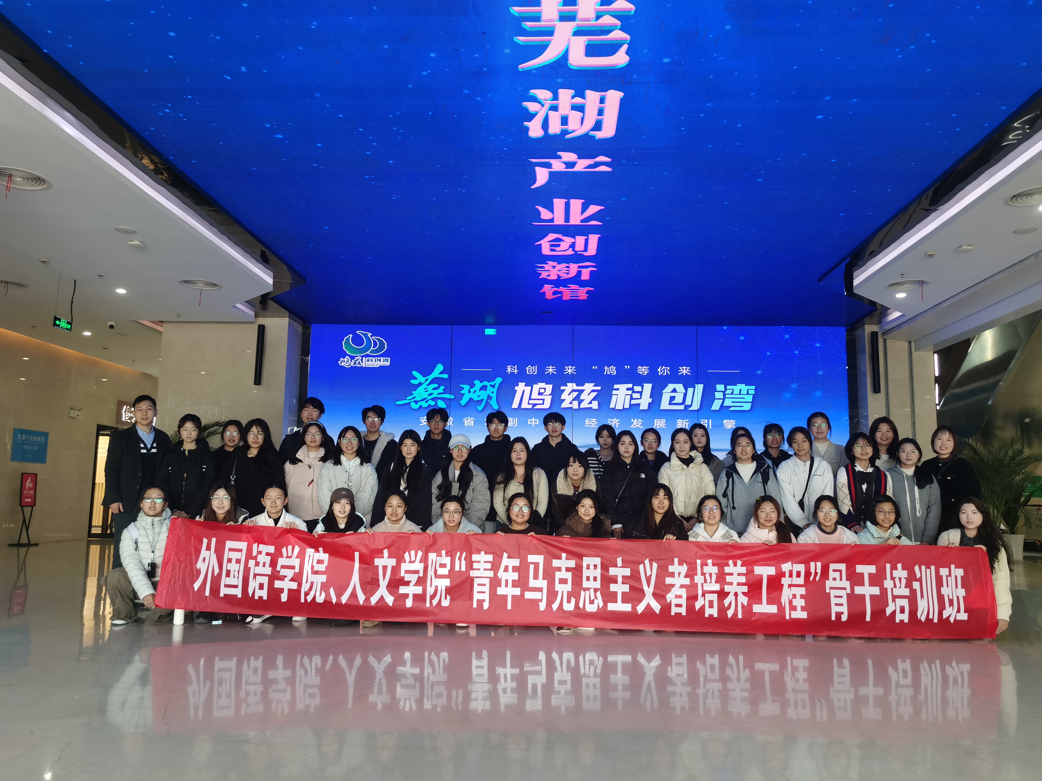 为深化青年马克思主义者培养工程实效,拓宽学员视野,感受地方发展脉动,11月29日上午,外国语学院与人文学院联合组织“青年马克思主义者培养工程”骨干培训班学员前往芜湖市产业创新馆开展实践教学活动。外国语学院团委书记张君、人文学院团委书记章雪平及两院学生骨干共计50余人参加了本次活动。
