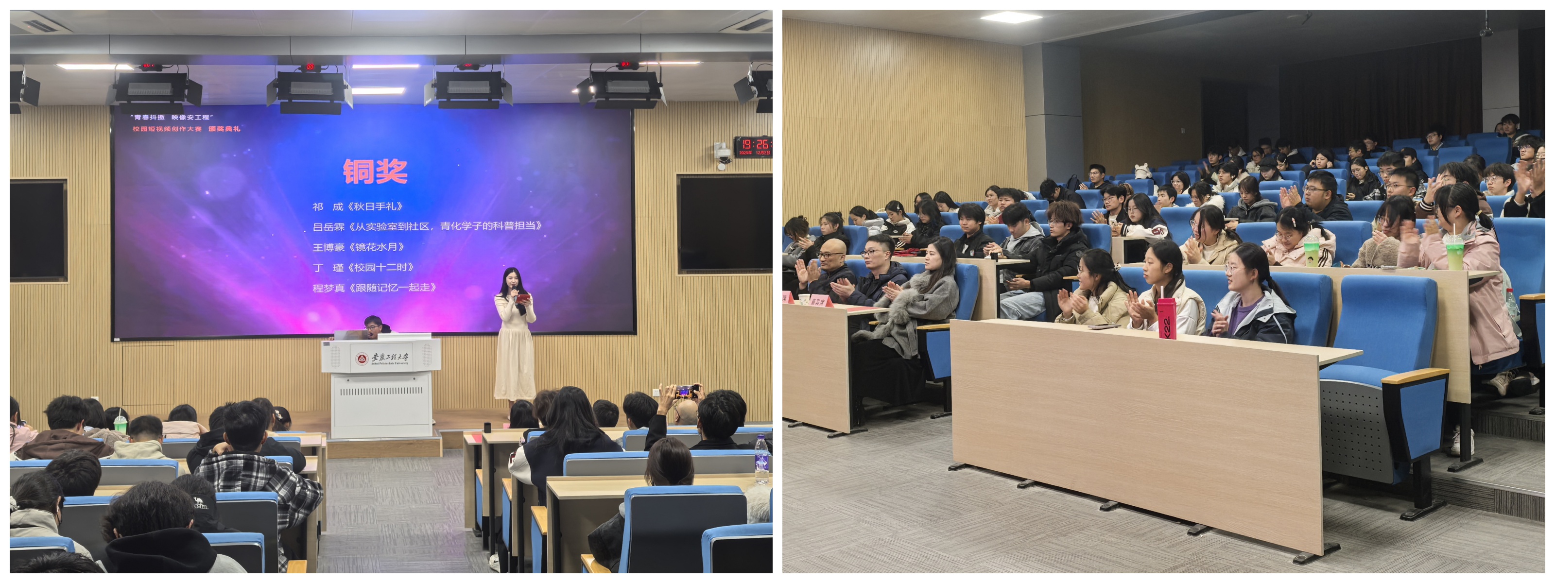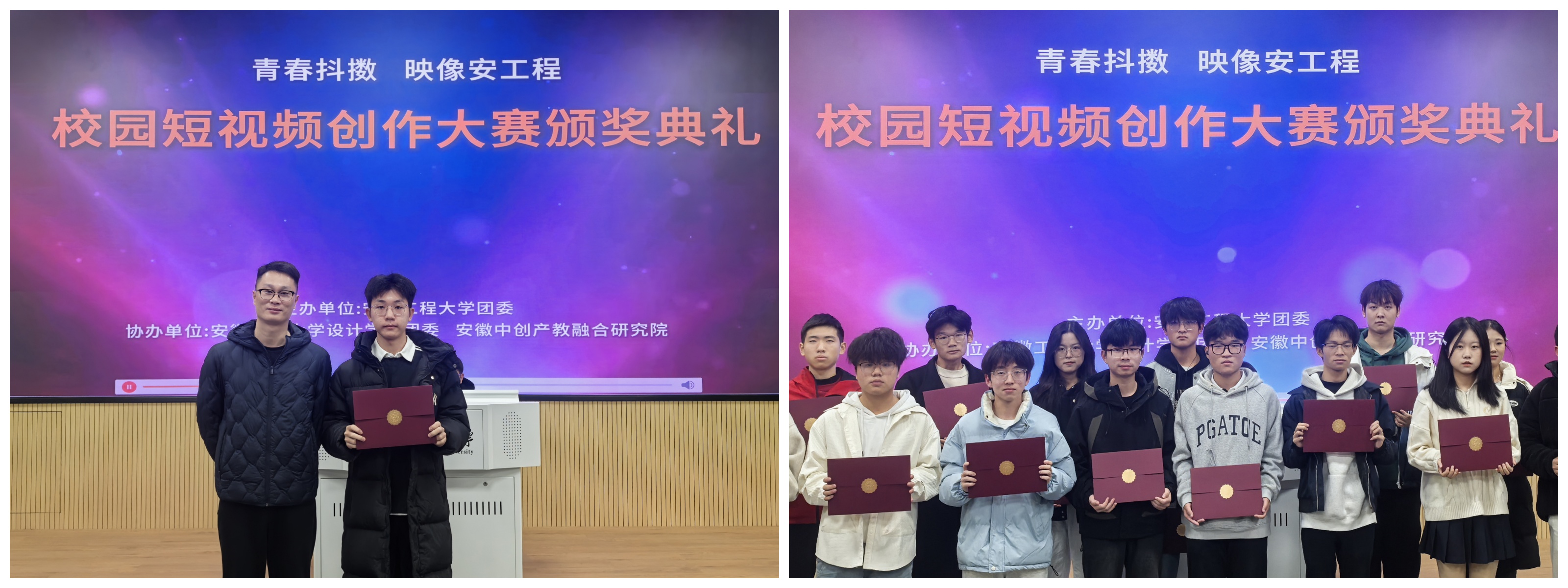 12月2日,由校团委主办,设计学院团委与安徽中创产教融合研究院协办的“青春抖擞 映像安工程”校园短视频创作大赛圆满落幕。大赛吸引了全校14个学院近300名学子参与,征集作品100余部,全网浏览量突破30万次,不仅生动展现了校园风貌,更成功搭建了一个促进产教融合、挖掘潜力人才的创新实践平台。