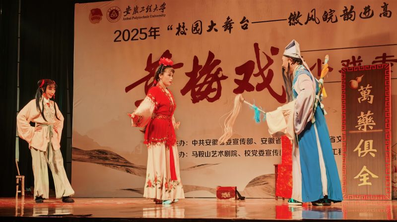整场演出唱腔婉转、剧情生动、韵味绵长,不仅为师生带来高雅的艺术享受,也进一步加深了大家对徽风皖韵及中华戏曲文化的理解与认同。学校将继续紧紧围绕立德树人根本任务,深入推进以文化人、以美育人,持续开展“非遗进校园”“高雅艺术进校园”等系列活动,不断提升青年学子的人文素养与审美能力,引导广大学生坚定文化自信,自觉传承和弘扬中华优秀传统文化,努力成为担当民族复兴大任的时代新人。