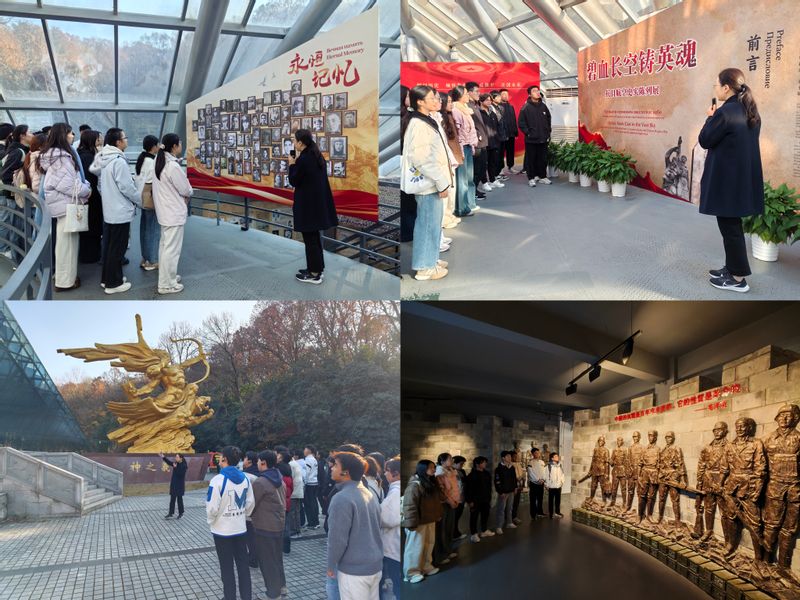 活动首站,团员青年们前往南京民间抗日战争博物馆、南京抗日航空烈士纪念馆进行沉浸式学习。在庄严肃穆的氛围中,同学们通过历史文物、影像资料和专业讲解,深刻铭记民族苦难,感悟抗战英烈不畏强暴、血战到底的英雄气概与国际友人的人道主义光辉。更为创新的是,同学们分组运用生成式人工智能(AIGC)技术,尝试对历史场景进行数字还原与创作,让静态的历史记忆通过动态、可视化的方式“活”起来,深化了对革命历程的认知与情感共鸣