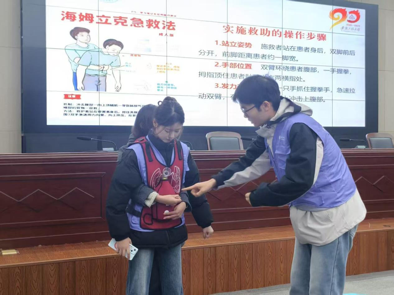 讲座伊始,主讲人强调了急救知识在日常生活以及突发状况中的关键重要性。随后,围绕海姆立克急救法、心肺复苏(CPR)以及自动体外除颤器(AED)的使用等核心内容展开了详细讲解。
