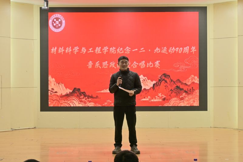 为弘扬爱国主义精神、传承“一二・九”运动红色基因,同时助力2025级新生快速融入班集体、筑牢集体荣誉感与凝聚力,12月9日晚,材料科学与工程学院在学术报告厅隆重举办纪念一二・九运动90周年音乐思政课暨合唱比赛。学院党委副书记方玖胜出席活动,团委书记田园、团委兼职副书记周冬梅、2025级新生辅导员王景芳、新能源材料专业兼职辅导员赵沈飞及学生会主席宋伟宁担任评委,全体2025级新生参与。