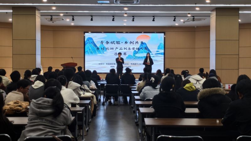 决赛中,入围的8支团队依次登台展示,围绕弋江区峨桥镇乡村旅游资源,从产品设计、营销方案、市场前景等多个维度展开阐述和答辩。团队通过精心制作的宣传视频,将生态理念、文化元素与现代营销思维相融合,呈现出一系列创新性与可行性并重的乡村旅游产品方案,充分展现了青年学子的智慧与担当。活动中,学校“赤铸梦溪”青年讲师团成员孙安娜、骆媛娜分别以《以青春之力,绘就乡村振兴新图景》《青春逐梦,共绘峨桥生态文旅新画卷》为题,分享了峨桥镇在乡村振兴过程中的生动故事与实践经验。