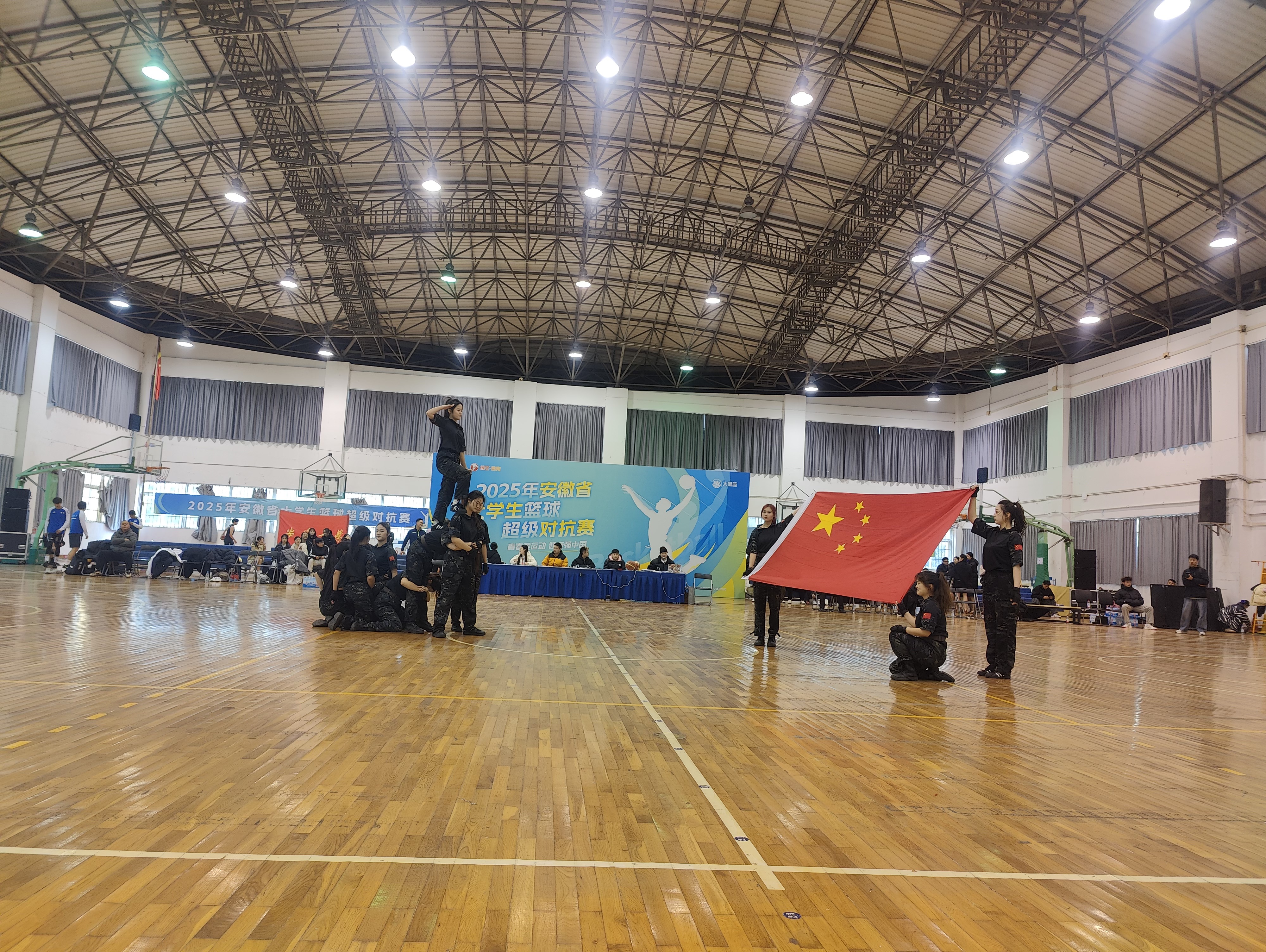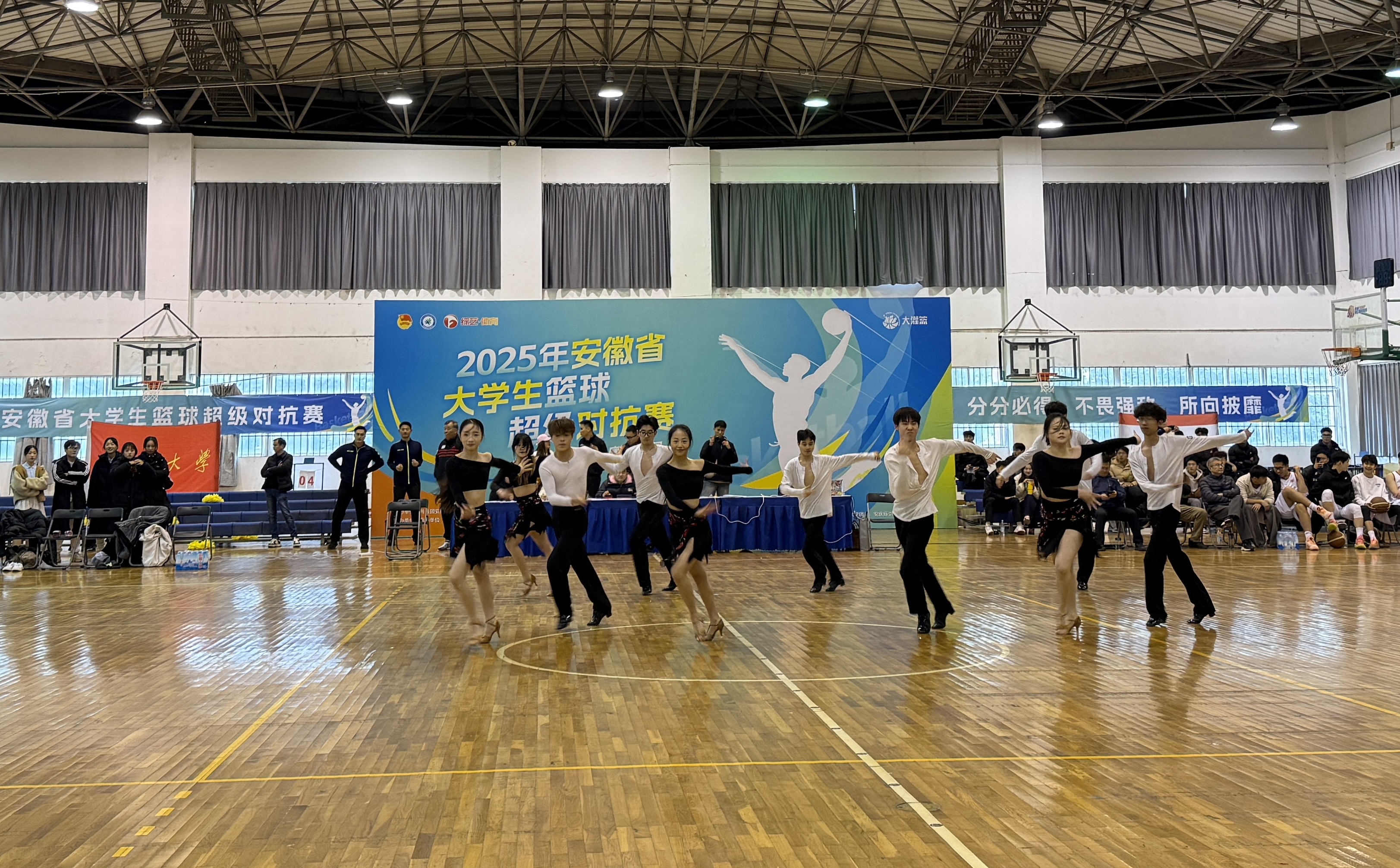 12月21日,2025年安徽省大学生篮球超级对抗赛(第二阶段比赛)在安徽工程大学体育馆激情上演,安徽工程大学男篮与安徽大学男篮展开巅峰对决。在开幕式上,来自我院的学子们以一场充满青春活力与艺术激情的精彩表演,点燃了全场气氛,成为赛事一道亮丽的风景线。