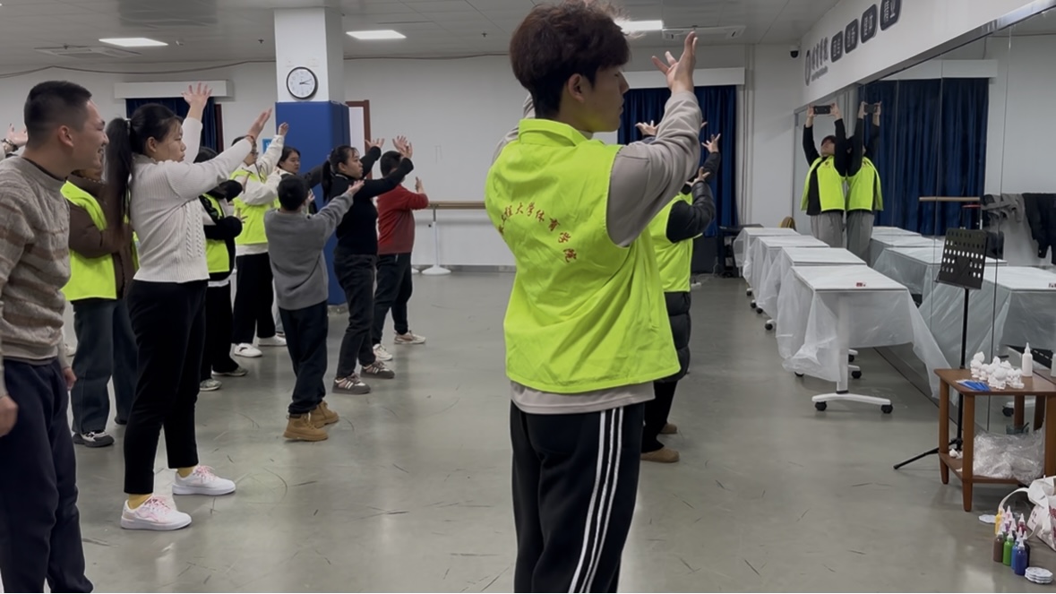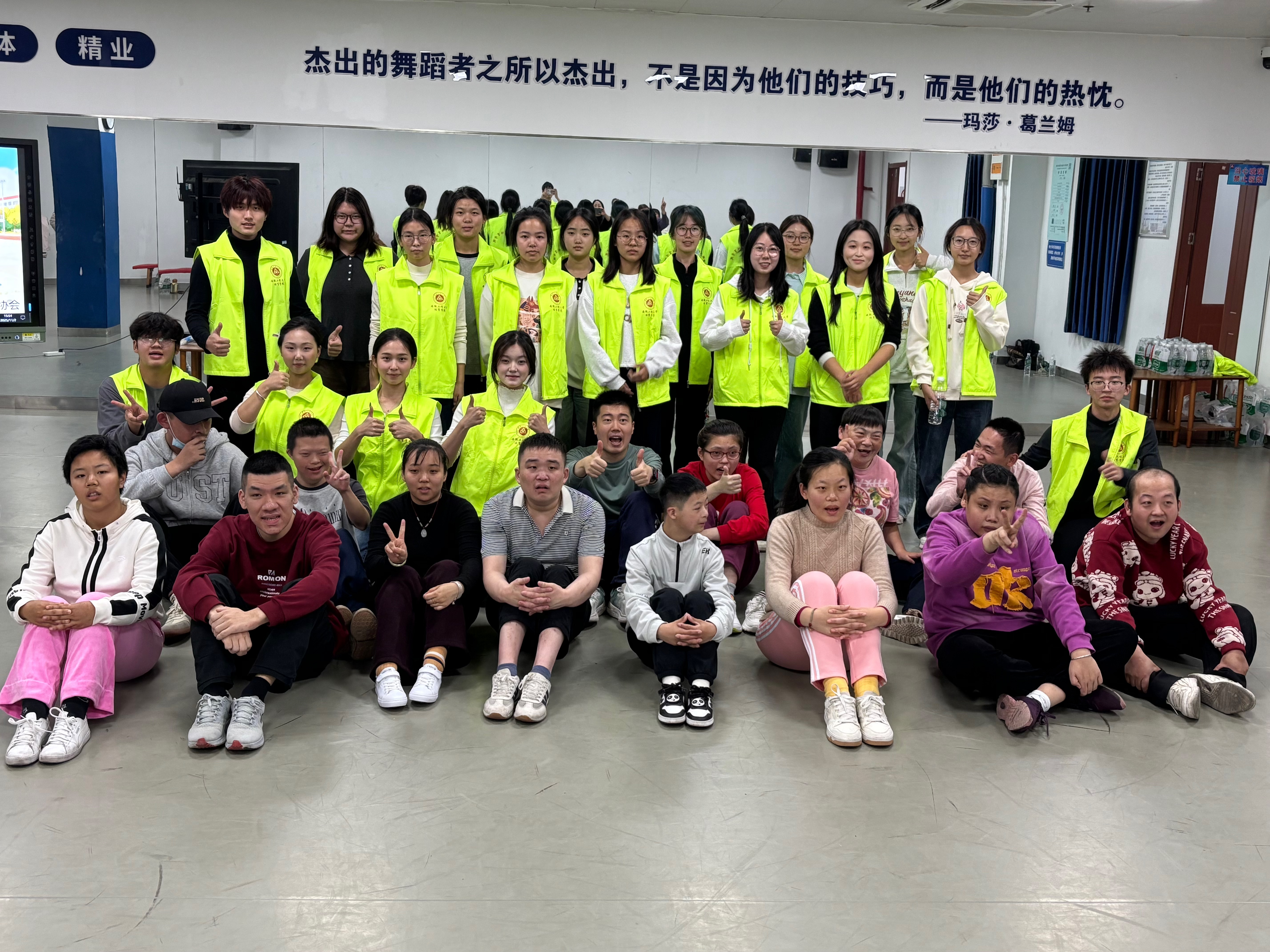 每周日下午,当阳光透过体育馆的玻璃窗洒进室内,一群特殊的孩子在体育学院志愿者的陪伴下,开始了他们最期待的运动艺术时光。作为我校体育学院特色志愿服务项目,项目以孤独症儿童为主要服务对象,依托体育学院专业背景,设计开发符合特殊儿童身心特点的体育艺术课程。从节奏感知到身体协调,从小组游戏到情感表达,志愿者们将体育训练与舞蹈、音乐等艺术形式结合,让孩子们在动感与美感中打开心扉。