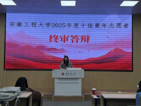 12月24日下午,2025年度“十佳青年志愿者”评选答辩活动在5J217教室顺利举行。团芜湖市委学少部部长钱泽慧、团镜湖区委书记张玮玮、团鸠江区委四级主任科员杨洁、中共芜湖市镜湖区委社会工作部党务工作者(校2024年西部计划志愿者)王鑫、校团委学生兼职副书记秦孟飞担任评委。
