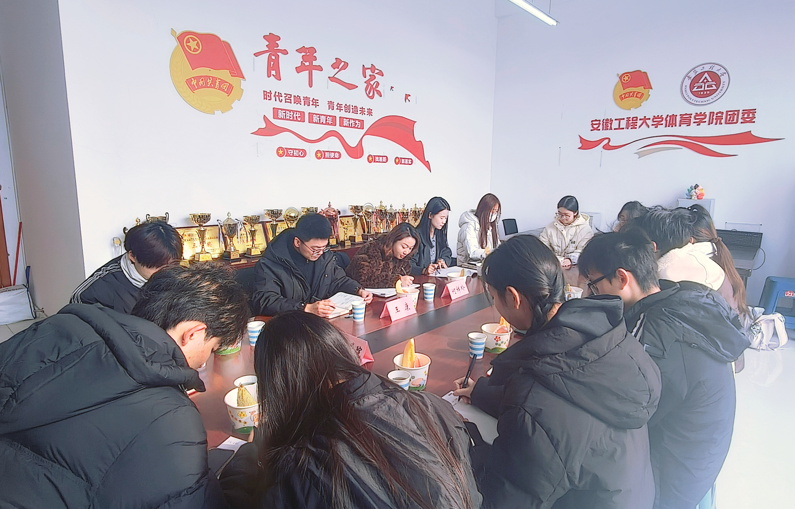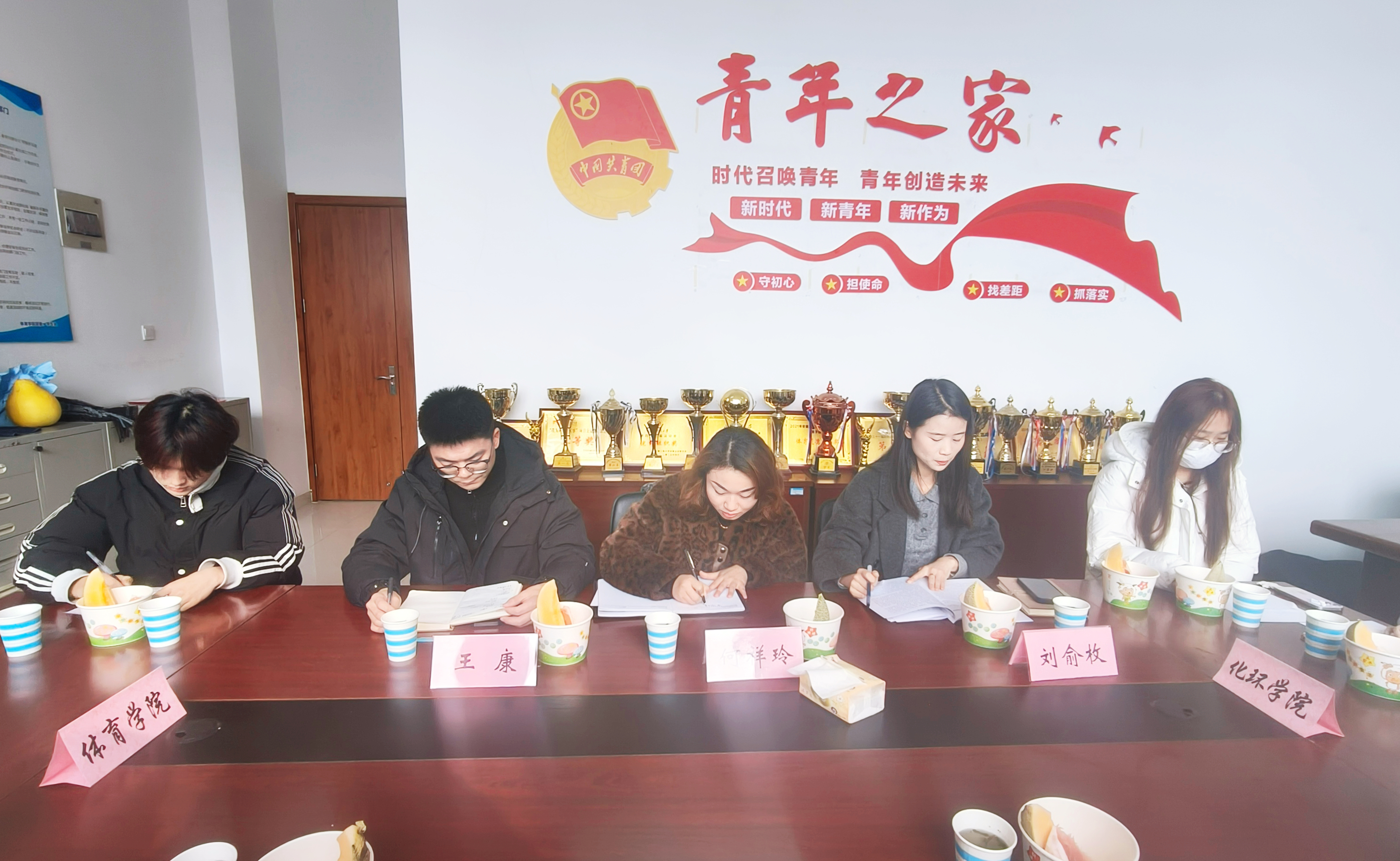 为深入学习宣传贯彻党的二十届四中全会精神,加强学院间共青团工作的交流与合作,12月30日,体育学院与化学与环境工程学院在体育学院团委办公室举办团委理论学习中心组联学活动。校团委挂职副书记何祥玲、体育学院团委副书记王康、化环学院团委负责人刘俞枚、两学院团委委员、学生骨干代表共同参加了本次联学。