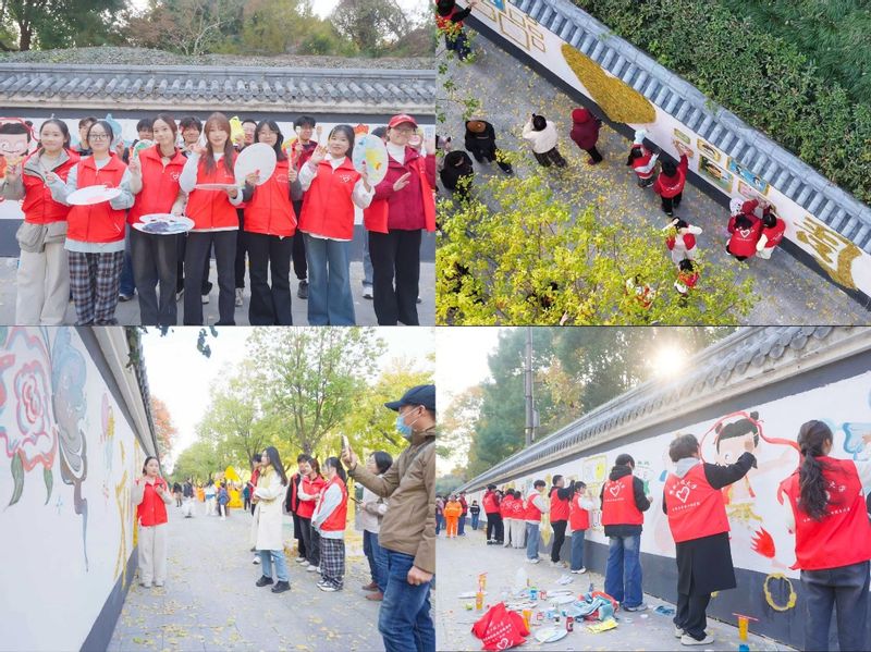 “向阳花”志愿服务团队携手镜湖区环卫所,共同开展 “杏福满江城” 落叶作画志愿活动。30余名志愿者以墙为纸、以叶为笔,串联起十二生肖、哪吒、西游记、百家姓等广受欢迎的传统文化元素,同时融入方特、古城、造船厂等承载市民记忆的芜湖地标景观。一幅传统与现代交织的生动画卷,在金秋芜湖徐徐展开,焕然一新的银杏大道引得游人如织。活动受到中国青年报、中国教育新闻网、安徽日报、芜湖日报等多家主流媒体关注报道,成为彰显城市温度与文化活力的生动窗口。