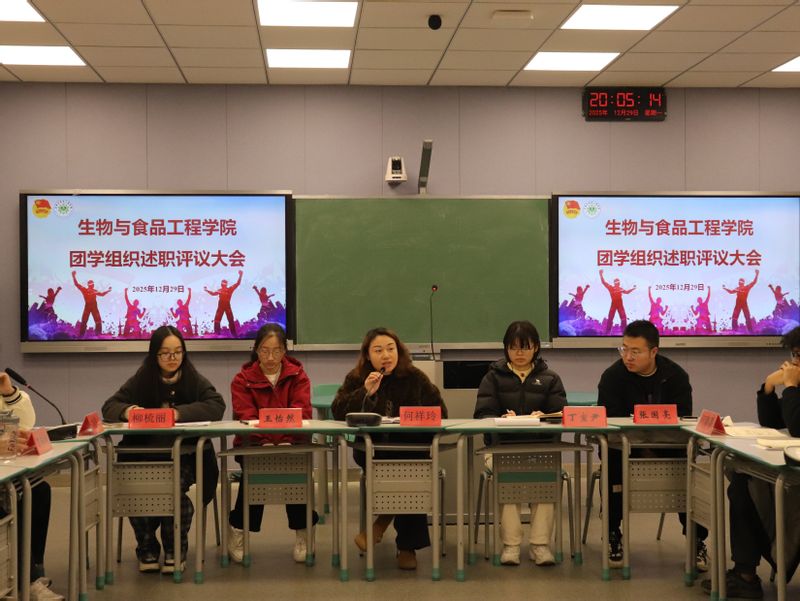 12月29日,生物与食品工程学院在4J101教室举行2025-2026学年第一学期团学组织述职评议会。学院团委书记何祥玲以及各团学组织部门负责人参加会议。会议由院学生会主席刘俊主持。