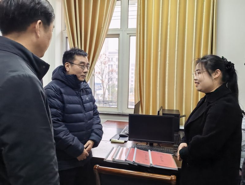 座谈会后,郑健一行实地查看了姚腾的工作环境,翻阅日常工作资料,详细了解其工作内容和实际需求,鼓励她立足岗位、精益求精,将专业所学与基层所需紧密结合,在实干中成长进步。