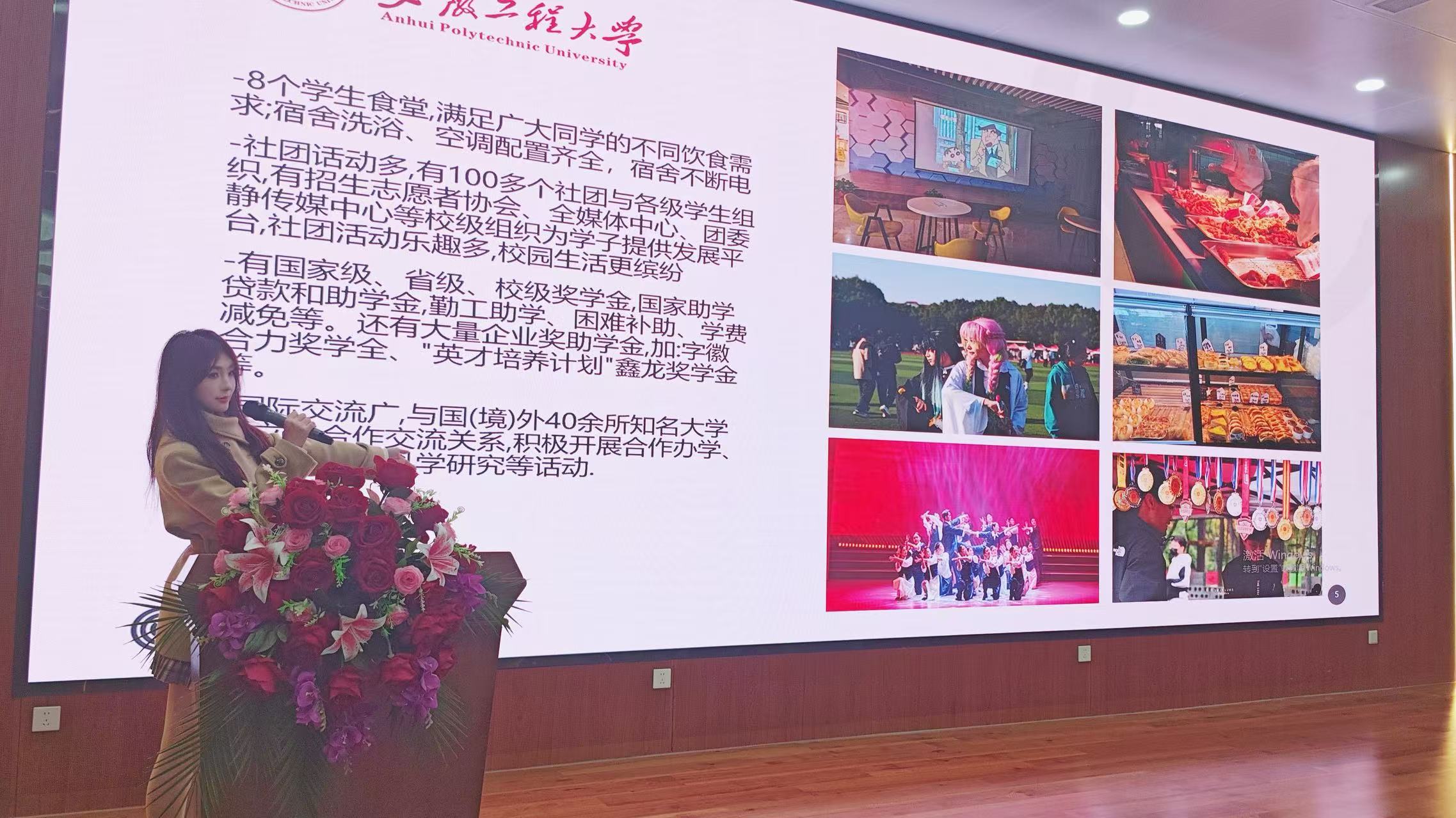 在肥西实验高级中学,宣讲团以“足尖之上,跳出青春无限可能”为主题,通过舞蹈生专属的早功晚训纪实、校园舞蹈大赛的精彩片段,展现了安徽工程大学在艺术教育与学科融合上的特色,分享了自己从高中舞蹈生到大学表演专业的成长蜕变,用真实经历打破了“舞蹈生发展路径单一”的刻板印象。
