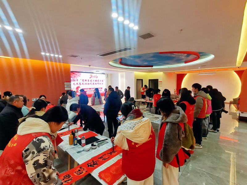 在丽竹社区的组织安排下,胡奕轩同学与其他返乡大学生志愿者一同参与了多场迎新春志愿服务活动。1月26日,社区联合新余市文化馆开展“贺新春送万福进万家”活动,他早早来到现场,协助书法老师铺纸研墨,并将一副副寓意吉祥的春联送到居民手中,传递浓浓年味。