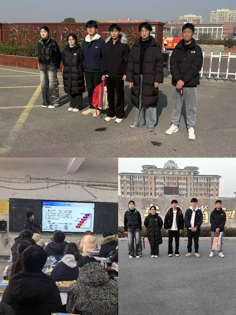 材科252班志愿团队奔赴皖、冀两省5所重点高中,先后走进安徽师范大学附属复兴中学、蒙城第一中学、河北辛集中学等学校,采用“主题宣讲+互动问答”形式,全面介绍学校办学特色、学科优势与人才培养成果,细致分享高考备考策略与大学生活感悟。在安徽师范大学附属复兴中学,团队结合专业学习与学科竞赛经历,为学子提供针对性学习建议;在河北辛集中学,围绕高中与大学学习衔接,重点强调知识积累、自律习惯与自主学习的重要意义,现场互动积极、氛围热烈。