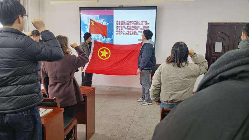 会议最后,全体团员面向团旗重温入团誓词,铿锵誓言彰显了青年团员牢记使命、勇担重任的坚定信念。