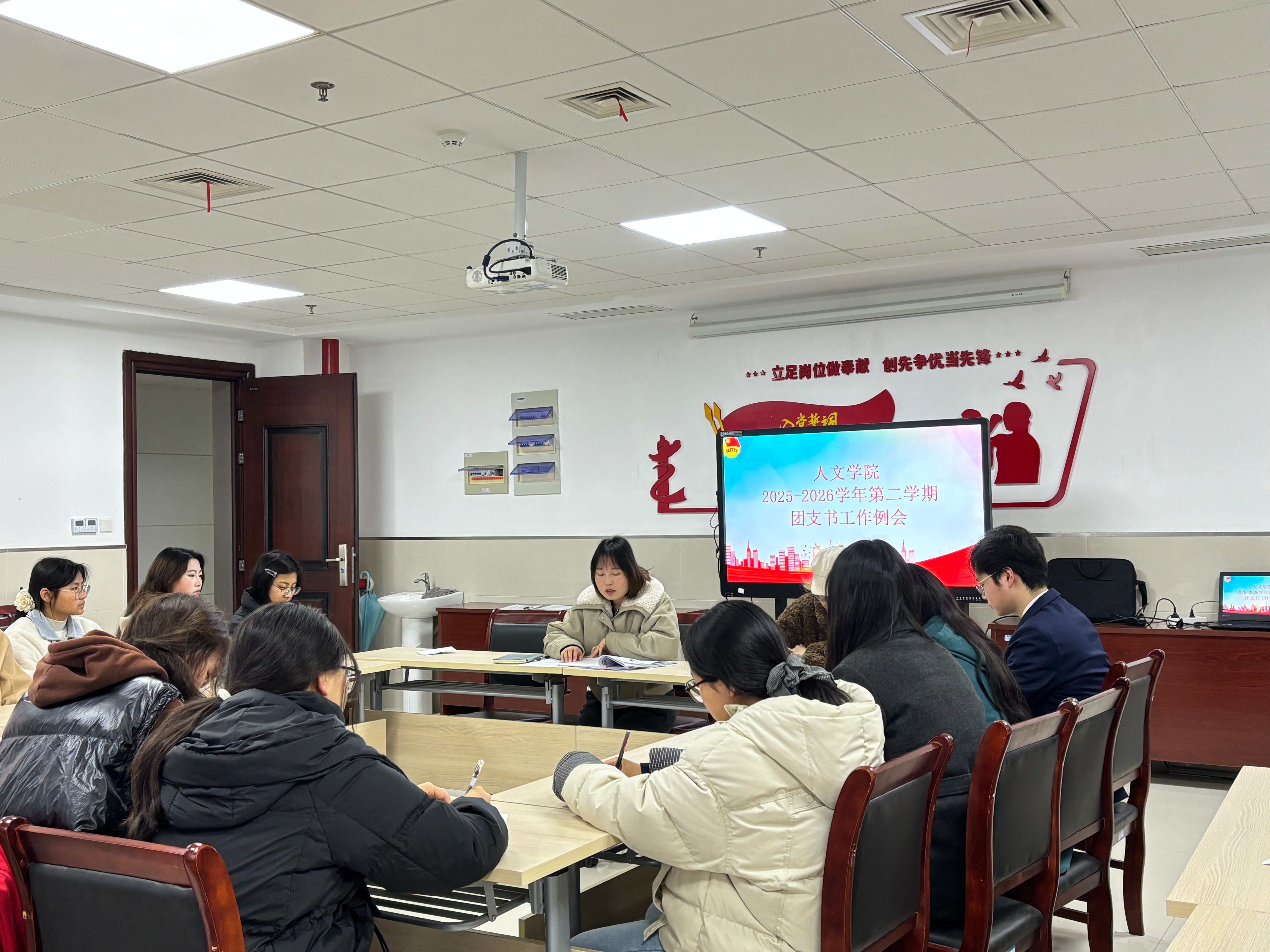 为加强基层团组织建设,提升团干部理论素养与工作能力,并对近期团学重点工作进行部署。3月18日,人文学院召开新学期团支书工作例会。会议由学院团委书记主持,团委各部门负责人及全院各团支部书记、副书记参加会议。
