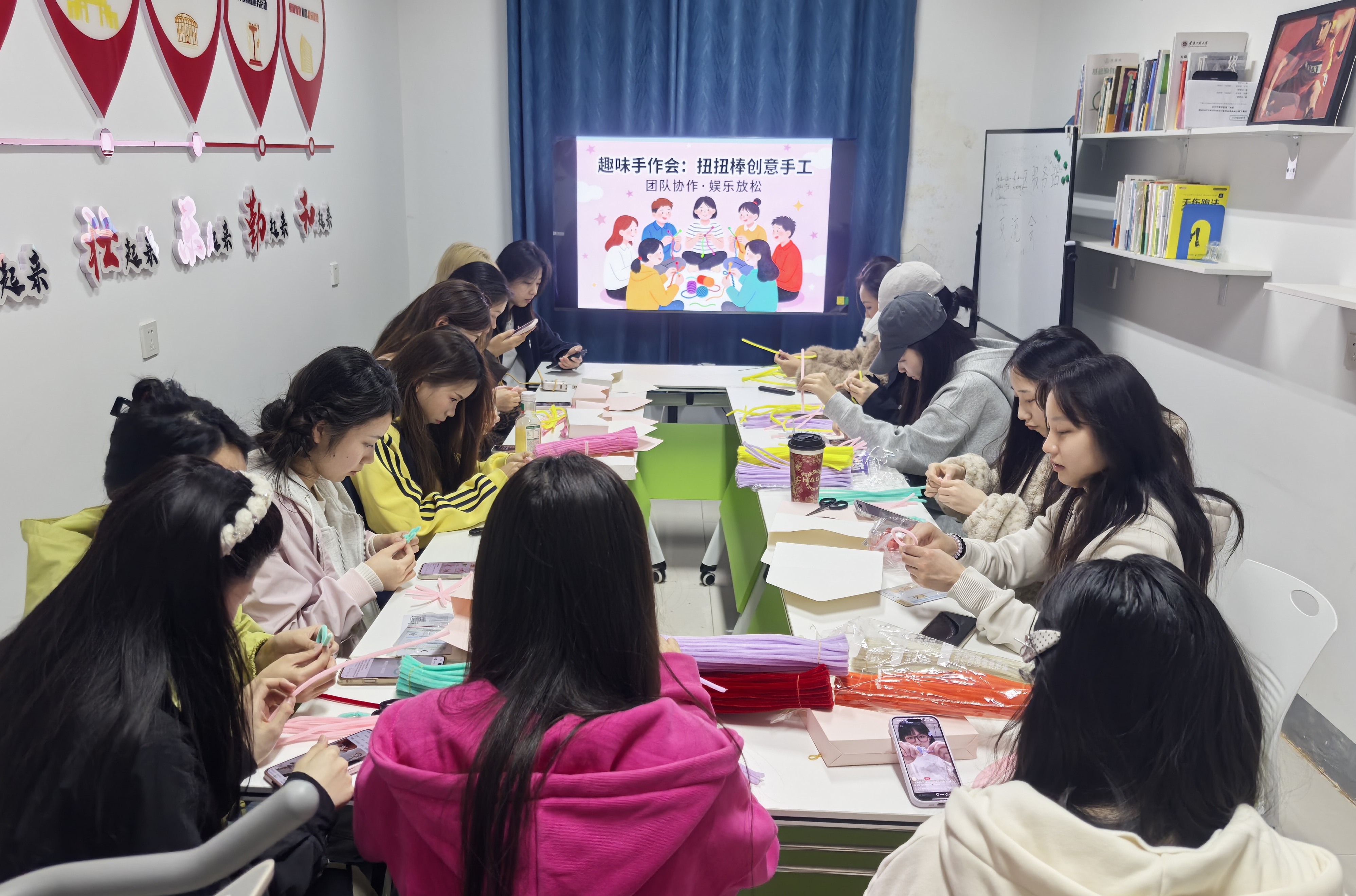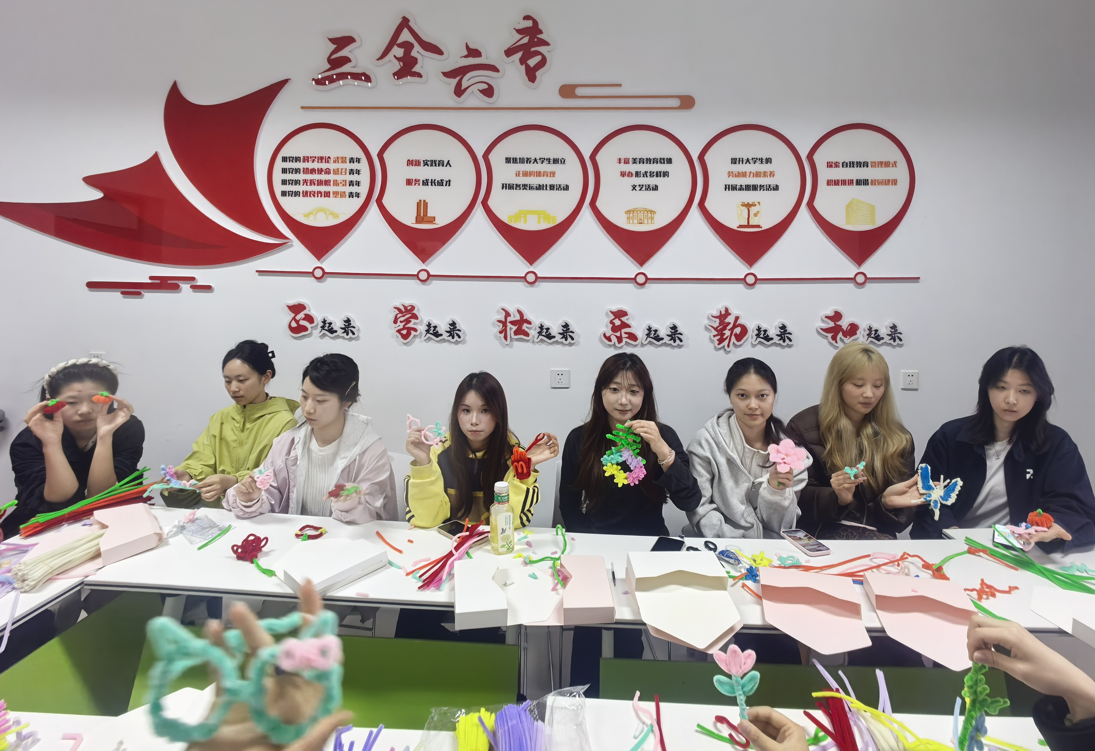 活动以“趣味生活、放松身心”为核心导向,选用操作简单、趣味性强的扭扭棒作为手工材料,让零基础的同学也能轻松上手。活动现场氛围温馨治愈,同学们满怀热情,充分发挥想象力与创造力,互相交流创意、协作配合,将一根根普通的扭扭棒精心制作成花朵、小动物、饰品等各式各样充满创意的手工作品。从构思造型到动手弯折、拼接装饰,每一个步骤都饱含巧思,大家在轻松愉悦的氛围里,沉浸式体验手工创作的乐趣,暂时放下学业的忙碌,尽情享受指尖造物的治愈感。