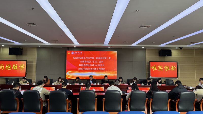 4月2日下午,共青团安徽工程大学第三届委员会第二次全体(扩大)会议在图书综合楼201会议室顺利召开。校党委副书记郑健,校党委组织部正处级组织员章靖平、共青团安徽工程大学第三届委员会全体委员、各学院团委负责人、校团委全体工作人员参会。会议由校团委副书记何惠妍主持。