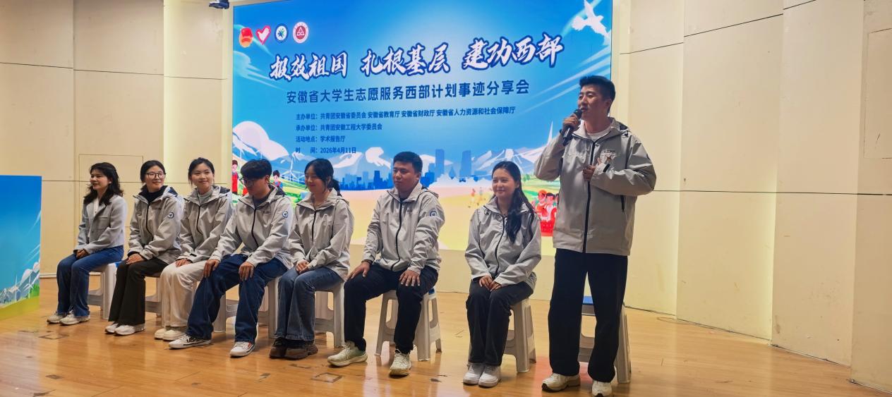 为深入学习贯彻习近平总书记关于青年工作的重要思想,引导广大青年学子响应国家号召、投身基层一线、服务西部建设,4月11日上午,由共青团安徽省委、省教育厅、省财政厅、省人社厅联合主办,校团委承办的“报效祖国 扎根基层 建功西部”安徽省大学生志愿服务事迹分享会在学校学术报告厅举行。校党委副书记郑健到场指导,团省委学校部二级调研员汪文斌,团省委西部计划省项目办及校团委相关负责人、安徽省大学生志愿者宣讲团优秀志愿者代表出席活动,350余名有志扎根基层、建功西部的学生参加活动。